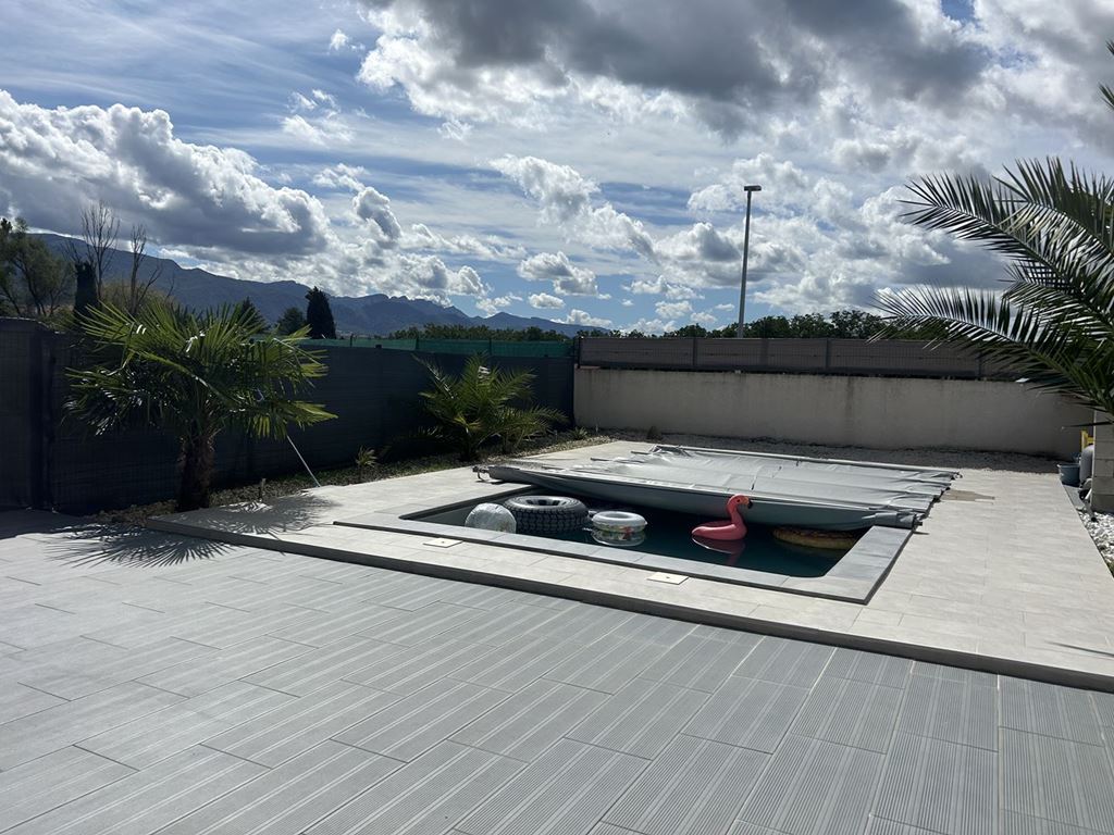 A l'extérieur vous disposez d'un terrain de 540 m² et vous n'aurez qu'à profiter des belles journées d'été avec une piscine de 8*4 et une vue imprenable sur les montagnes.