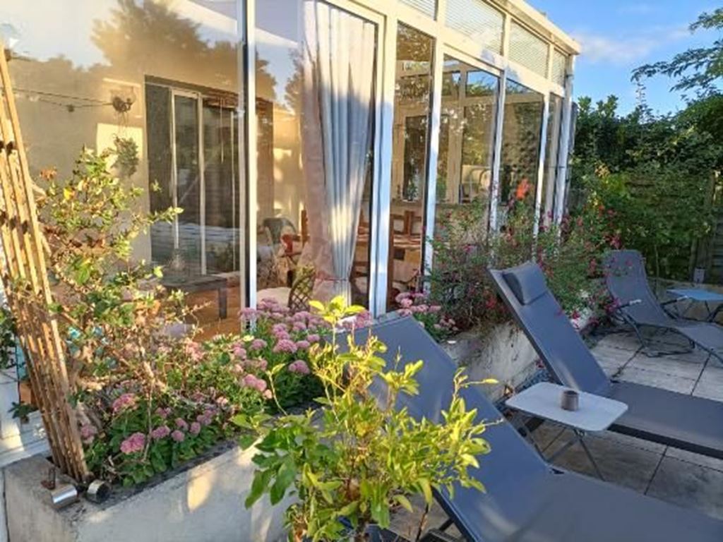 Exclusivité, centre de Mours, villa de 153 m² comprenant une cuisine entièrement équipée semi ouverte sur un double salon séjour chauffé par un poêle à bois et avec un accès sur une belle véranda.