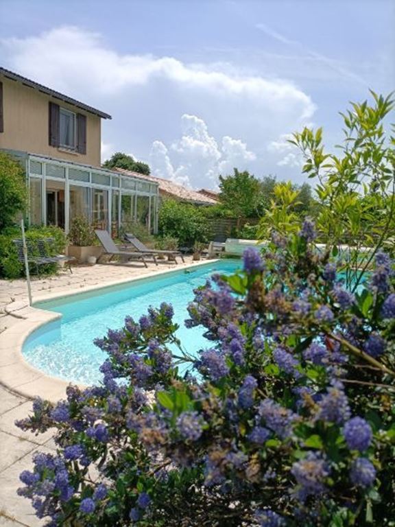 A l'extérieur vous découvrirez un charmant terrain entièrement clos et arboré avec deux terrasses, une grande piscine de 8*4 et un jardin.