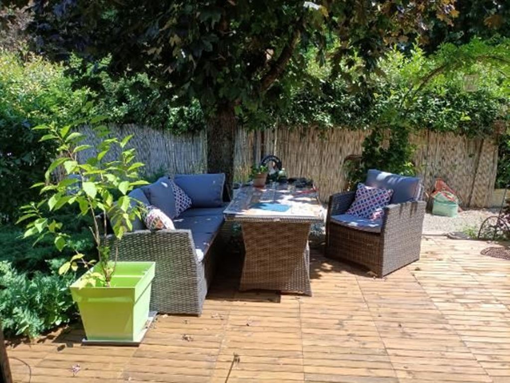 A l'extérieur vous découvrirez un charmant terrain entièrement clos et arboré avec deux terrasses, une grande piscine de 8*4 et un jardin.